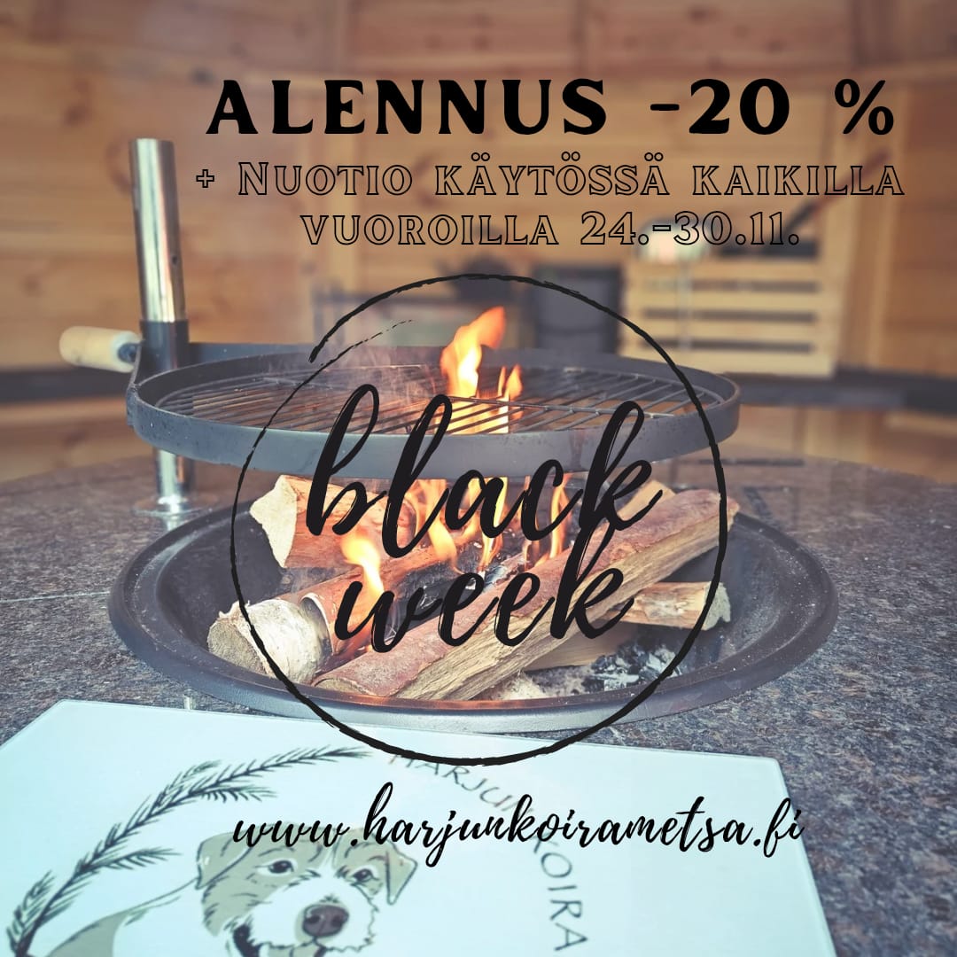 Black Week (24.-30.11.2025) ajalta tuli paljon palautteita ja kiitoksia, pääasiassa mahdollisuudesta tulistella nuotiolla lyhyemmilläkin vuoroilla. Ohjeistimme asiakkaita lisäämään lähtiessään pari isoa puuta nuotioon, jotta seuraavan ei tarvitse sytyttää sitä uudelleen. Tämä toimi hyvin -hienoa.