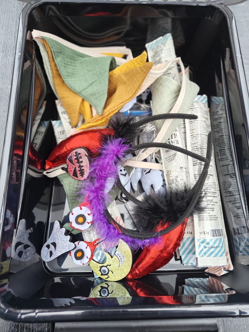 Oletko aikeissa viettää koirasi syntymäpäivää koirametsässä? Meiltä löytyy teemalaatikko, jossa tarvikkeita juhliin ja rekvisiittaa valokuviin. Laatikon sisältö vaihtelee kausittain. Halloween väistyy ja joulu tulee pian tilalle, laatikko on koirametsällä koko joulukuun.