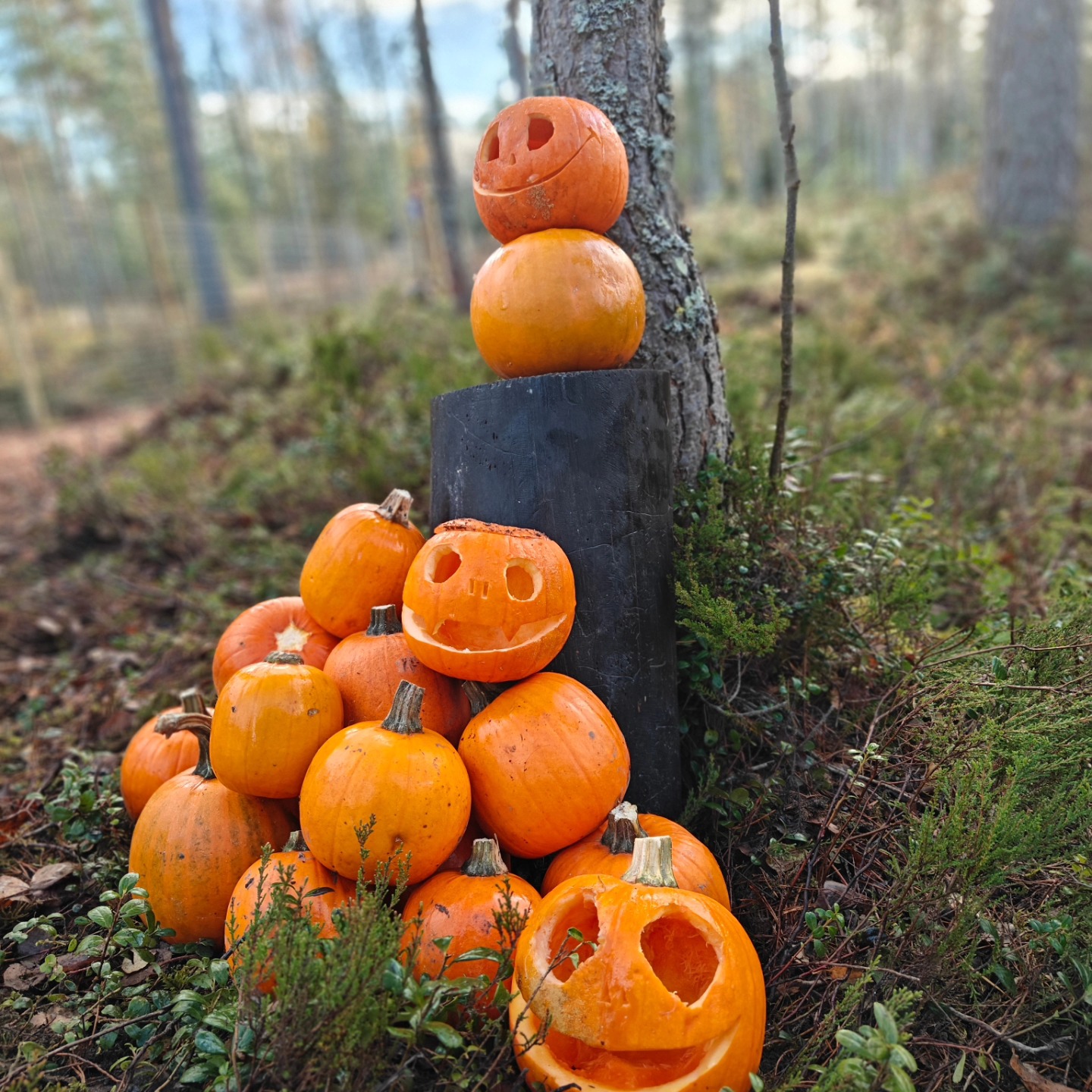 Säkyläläinen Siskosten Vihannestila on lahjoittanut lajittelun yhteydessä syntyvää kurpitsahävikkiä meille koirametsään, joten koirametsäkävijöille on nyt luvassa erityisen tunnelmallisia vierailuja.